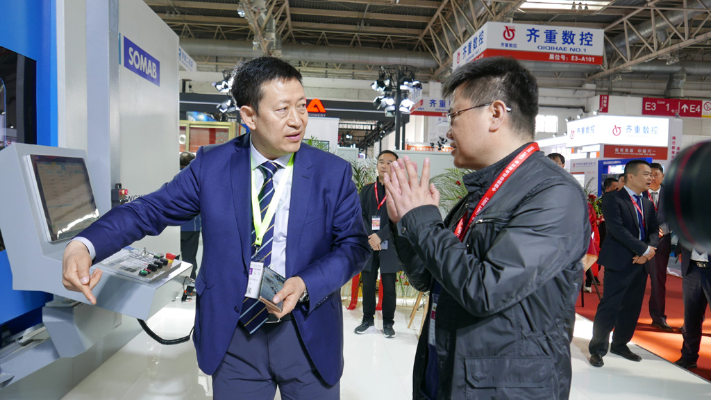 座談中,蔣保權(quán)向王文秀詳細(xì)介紹了公司展品的突出優(yōu)勢和火爆的參展效果,分析了目前機床行業(yè)發(fā)展形勢。