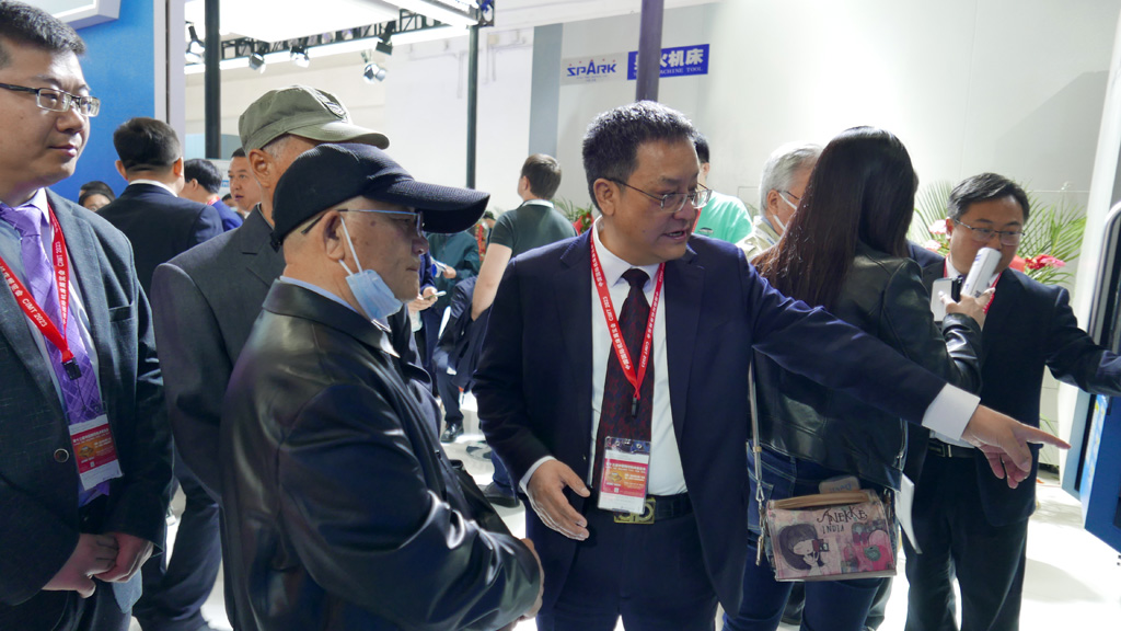 4月13日,星火機床集團公司展位(E3—E003)現(xiàn)場,迎來了一波“特殊”的客人——家住北京且已退休的星火老一輩領(lǐng)導(dǎo)和職工。
