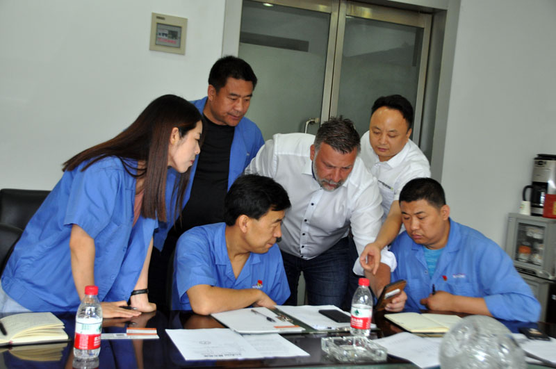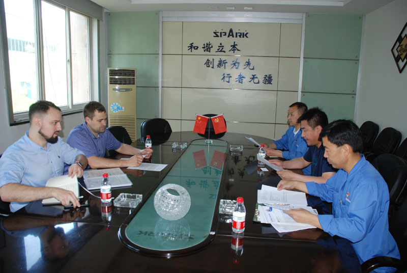 6月6日,意大利MCM公司毛伯一行2 人,在國(guó)內(nèi)經(jīng)銷公司負(fù)責(zé)人陪同下來(lái)星火機(jī)床公司驗(yàn)收訂貨產(chǎn)品,意大利客商來(lái)到星火機(jī)床公司后,與星火機(jī)床集團(tuán)公司總經(jīng)理劉勝,星火公司總經(jīng)理助理展海瑜,星火機(jī)床集團(tuán)公司銷售部副部長(zhǎng)宋建文等在接待室進(jìn)行了座談交流,雙方就星火機(jī)床公司出口產(chǎn)品在技術(shù)、質(zhì)量、交貨期等需要改進(jìn)的方面交換了意見(jiàn),還對(duì)下一步合作意向進(jìn)行探討。