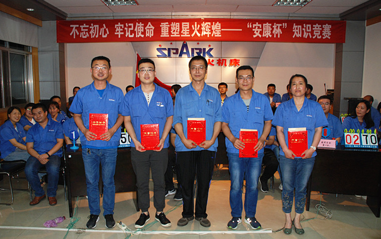 星火機床集團及星火機床公司領(lǐng)導(dǎo)蔣保權(quán)、蔣俊、趙錦銘、劉生玉分別為獲獎隊頒獎。至此,為期一周、經(jīng)過四場預(yù)賽的不忘初心、牢記使命、重塑星火輝煌“安康杯”知識競賽圓滿落幕。