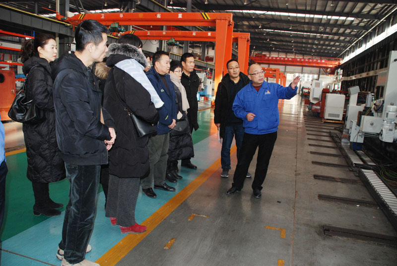 在蔣俊等陪同下,安世良一行首先參觀了星火工業(yè)園大型裝配分廠、噴包分廠等生產(chǎn)現(xiàn)場及公司展廳,蔣俊介紹了星火機床公司主要產(chǎn)品的用途、技術能力、市場情況等。