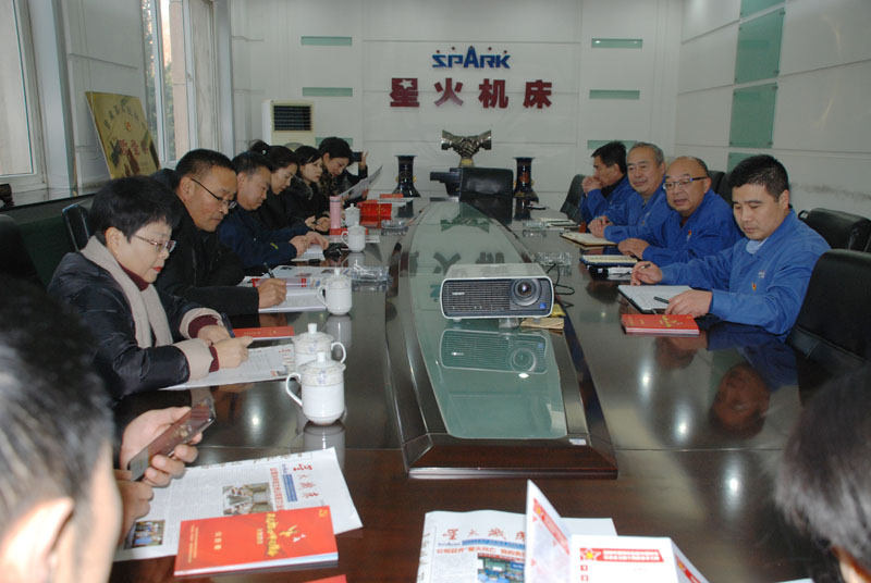 參觀結束后,星火機床集團及星火機床公司領導蔣俊、趙錦銘、鞠家兵等與黨校領導在公司小會議室座談交流。安世良說,今天來的是黨校第4黨支部黨員,近年來,黨校非常重視現(xiàn)場實踐教育教學,目的是通過進農(nóng)村、進企業(yè)、進學校,在開展黨校培訓工作中將理論教育與實踐相結合,高質量的做好教學工作。星火機床公司具有悠久的發(fā)展歷史,無論是產(chǎn)品、技術,還是黨建方面,都是天水企業(yè)的一面旗幟,星火能夠挺過非常困難的時期,并且發(fā)展勢頭越來越好,這與抓黨建工作密不可分,值得我們學習。蔣俊介紹了星火機床公司的發(fā)展歷程、生產(chǎn)經(jīng)營現(xiàn)狀,尤其是新領導班子組建以來,通過加強黨建引領,開展“不忘初心、牢記使命”主題教育,轉變干部工作作風、發(fā)揮黨員模范帶頭作用,提高工作質量、化解債務危機、修復銷售渠道,提振干部職工信心,促使企業(yè)各項生產(chǎn)經(jīng)營指標逆勢增長等方面的做法、經(jīng)驗及取得的成效,希望黨校領導多提意見建議,以利星火更好發(fā)展。