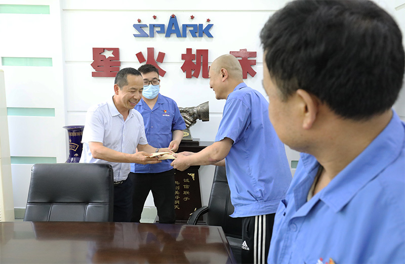 蔣俊代表星火機(jī)床公司黨委對(duì)市國(guó)資委領(lǐng)導(dǎo)來(lái)公司送溫暖、慰問(wèn)生產(chǎn)一線黨員表示感謝。他說(shuō),我們將教育黨員干部不忘初心、牢記使命,以實(shí)際行動(dòng)向建黨100周年獻(xiàn)禮,以實(shí)際行動(dòng)回報(bào)市委、市國(guó)資委、企業(yè)工委的關(guān)心。