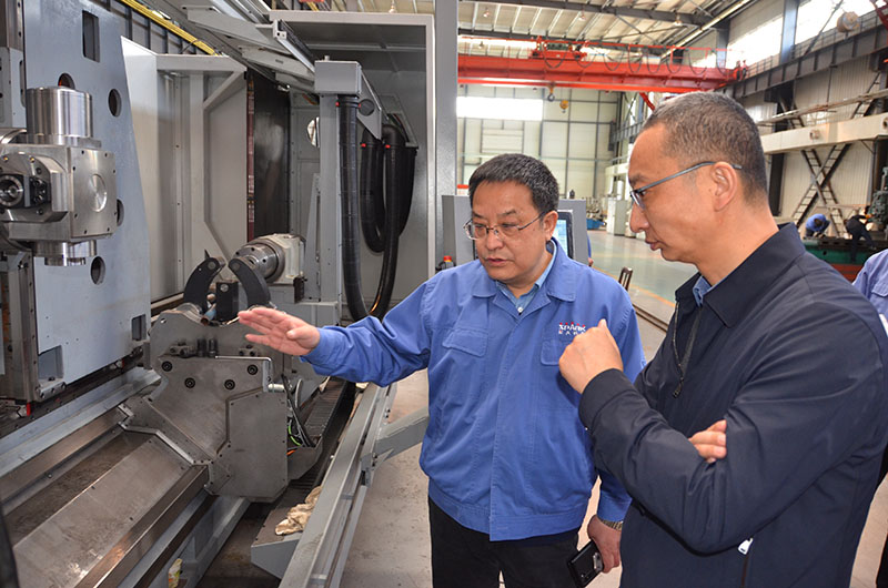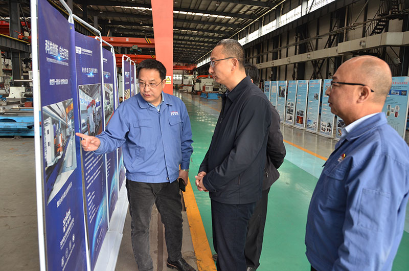星火機(jī)床集團(tuán)公司黨委書(shū)記、董事長(zhǎng)蔣保權(quán),黨委副書(shū)記、副總經(jīng)理蔣俊陪同參觀生產(chǎn)現(xiàn)場(chǎng),匯報(bào)工作。