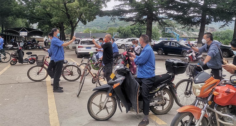 早上7點(diǎn)鐘,星火家園門口。公司各單位負(fù)責(zé)人已紛紛到崗,配合門衛(wèi)和社區(qū)工作人員,確認(rèn)上班職工,為職工家屬及住戶發(fā)放出入證。