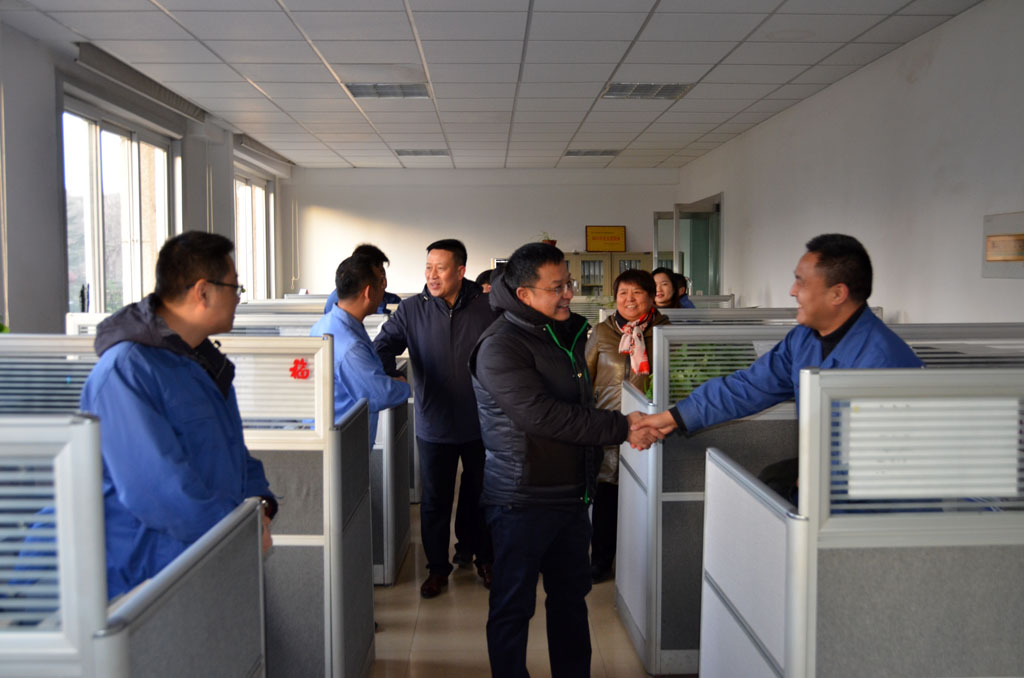 8點(diǎn)上班,公司領(lǐng)導(dǎo)蔣保權(quán)一行又前往各生產(chǎn)車間及部門,向辛勤耕耘的職工同志們拜年。每到一處,蔣保權(quán)、劉勝等都親切地與職工交談,了解節(jié)日出行、家人身體健康等情況,向他們送去新春的祝福。一聲聲關(guān)切的問候,一句句真誠的祝福,讓節(jié)后第一天上班的職工感受到公司濃濃的關(guān)愛和溫情。