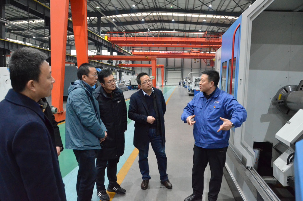 調(diào)研中,劉勝通向調(diào)研組匯報(bào)了公司作為國(guó)家專精特新“小巨人”在適應(yīng)國(guó)家發(fā)展戰(zhàn)略、強(qiáng)工業(yè)強(qiáng)科技、服務(wù)地方經(jīng)濟(jì)建設(shè)、促進(jìn)技術(shù)創(chuàng)新方面發(fā)揮的作用,介紹了公司生產(chǎn)經(jīng)營(yíng)基本情況,陪同參觀了企業(yè)自主研發(fā)生產(chǎn)的高端數(shù)控纏繞機(jī)床、大型五軸聯(lián)動(dòng)車銑復(fù)合加工機(jī)床、高精度全自動(dòng)大型數(shù)控軋輥磨床、船舶用超大直徑筒體加工專用機(jī)床等各類高端數(shù)控機(jī)床、重型機(jī)床和專用機(jī)床的特點(diǎn)、用途、應(yīng)用領(lǐng)域及市場(chǎng)前景,以及企業(yè)在解決高端數(shù)控機(jī)床研發(fā)生產(chǎn) “卡脖子”難題、實(shí)現(xiàn)“破卡替代”方面所做的工作和取得的成效。