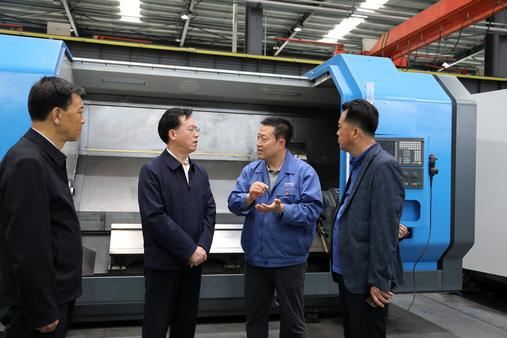 在工業(yè)園裝配車(chē)間現(xiàn)場(chǎng),劉勝向贠建民一行介紹了企業(yè)的歷史沿革、公司發(fā)展變化,并結(jié)合國(guó)內(nèi)外市場(chǎng)環(huán)境分析了當(dāng)前企業(yè)面臨的機(jī)遇與挑戰(zhàn)。劉勝說(shuō),在當(dāng)前復(fù)雜多變的國(guó)際環(huán)境下,星火機(jī)床肩負(fù)著促進(jìn)國(guó)內(nèi)機(jī)床行業(yè)發(fā)展和“破卡替代”的重任。星火機(jī)床在借鑒吸收法國(guó)索瑪公司國(guó)際先進(jìn)機(jī)床技術(shù)的基礎(chǔ)上,通過(guò)集成創(chuàng)新,形成了具有自己獨(dú)特的技術(shù)體系,研發(fā)生產(chǎn)的五軸聯(lián)動(dòng)車(chē)銑復(fù)合加工中心等產(chǎn)品,進(jìn)一步縮小了與國(guó)際先進(jìn)機(jī)床之間的差距。