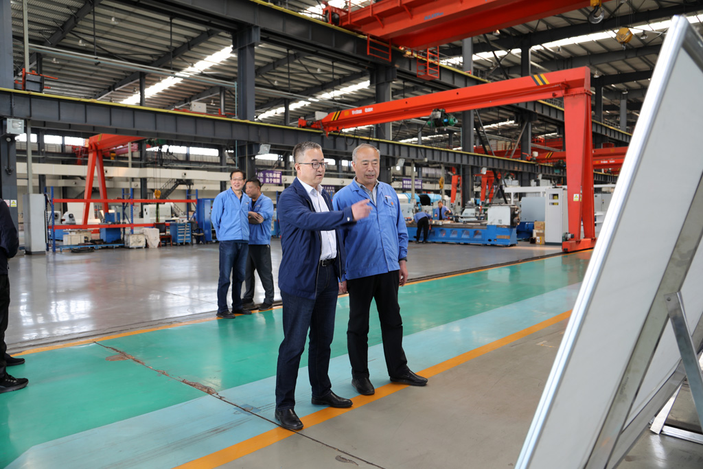 在裝配車(chē)間,趙錦銘向王虎中一行介紹了企業(yè)的歷史沿革、發(fā)展變化,匯報(bào)了企業(yè)科技創(chuàng)新、市場(chǎng)占有率,以及一季度工業(yè)產(chǎn)值、項(xiàng)目建設(shè)進(jìn)展等。