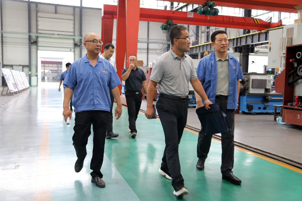 在工業(yè)園裝配車間現(xiàn)場,星火機(jī)床集團(tuán)公司總經(jīng)理劉勝陪同裴育棟一行參觀了生產(chǎn)現(xiàn)場并介紹了企業(yè)的生產(chǎn)經(jīng)營,以及并購青重機(jī)床的情況。參觀結(jié)束后,裴育棟一行與公司領(lǐng)導(dǎo)劉勝、蔣俊等在銷售部會議室座談。