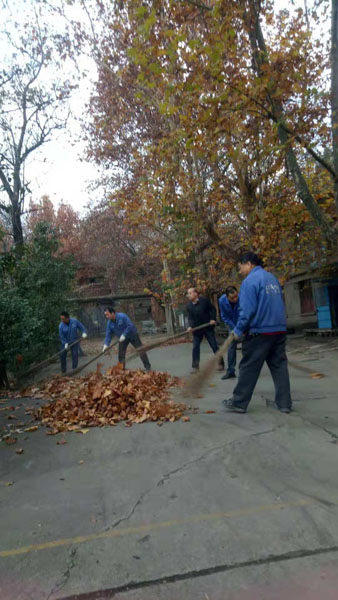 冬季來臨,樹上的葉子開始頻繁的掉落,落葉不僅影響環(huán)境,還易造成火災(zāi)、堵塞排水溝等,有極大的安全隱患。本次義務(wù)勞動,各黨支部的主要任務(wù)是清理家屬區(qū)、廠區(qū)綠化帶內(nèi)及排洪溝里的落葉及淤泥。勞動中,大家爭先恐后,充分發(fā)揚(yáng)不怕臟不怕苦的精神,草叢里的落葉不好清理,便用手往外抓;排洪溝里的淤泥不好鏟,直接鉆進(jìn)溝去挖。經(jīng)過幾天的清理整頓,廠區(qū)、家屬區(qū)環(huán)境煥然一新。