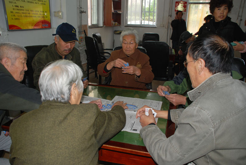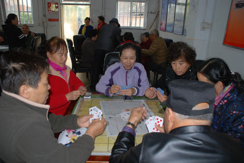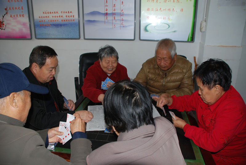 星火機(jī)床公司退休支部書記石文敏宣布比賽規(guī)則后,老職工三人一組,開始比賽。比賽一局定輸贏,凡是參加活動(dòng)的,都有紀(jì)念品。活動(dòng)現(xiàn)場(chǎng),人來人往,非常熱鬧,四張比賽桌座無虛席,圍觀的人比參賽的人還要多,比賽現(xiàn)場(chǎng)不時(shí)傳來歡快的笑聲。