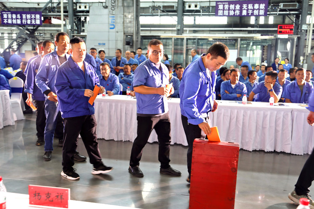 大會(huì)以無(wú)記名票決的方式選舉產(chǎn)生了公司職工董事、工會(huì)委員會(huì)、經(jīng)費(fèi)審委員會(huì)和女工委員會(huì)。蔣俊當(dāng)選公司職工董事,馬存福等15人當(dāng)選工會(huì)委員會(huì)委員,武海軍等3人當(dāng)選工會(huì)經(jīng)審委員會(huì)委員,展海瑜等5人當(dāng)選女工委員會(huì)委員。會(huì)議審議通過(guò)了《關(guān)于成立公司工會(huì)勞動(dòng)保護(hù)監(jiān)察檢查委員會(huì)的決議》。