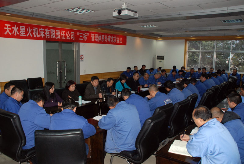 6日上午8點,“三標”管理體系首次會議在大會議室召開。審核組成員、國家注冊高級審核員王述偉、周利云,審核組成員、國家注冊審核員程華、張宜春、李永文及各單位主要負責人、內審員、陪審員參加了會議。星火機床集團及公司領導趙錦銘、鞠家兵、劉強、展海瑜參加了會議。